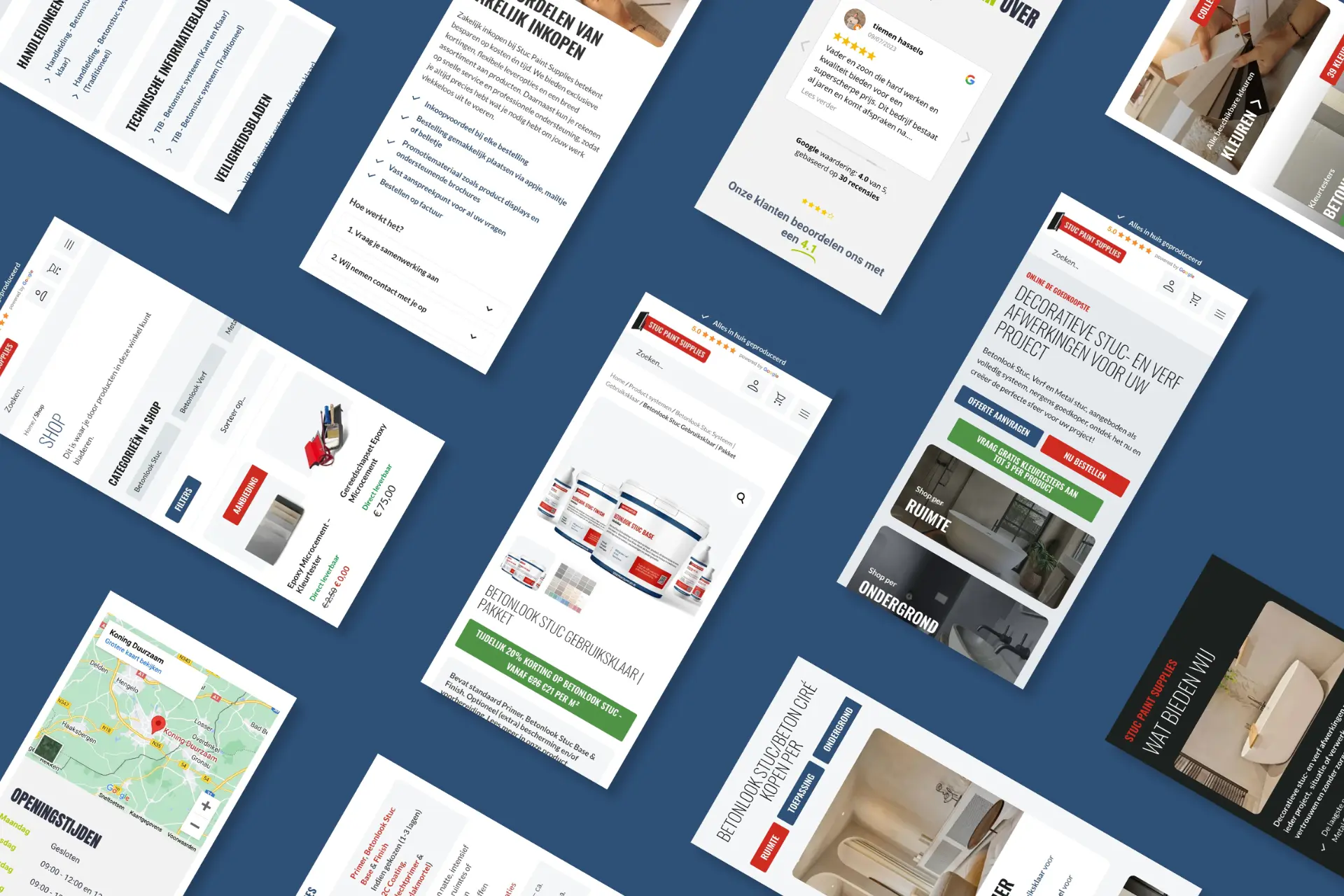 Stuc Pain Supplies approached me with a clear ambition: to pioneer online within their niche by launching a webshop that would not only reflect their brand, but also handle the complexity of their product offering. Despite a relatively limited assortment, each product came with a wide range of variables — from packaging formats to specific technical properties.